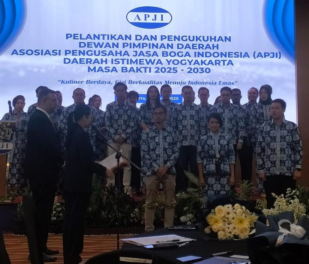 (Hippijogja.com, Yogyakarta) – Kali ini Dewan Pengurus Daerah Himpunan Pengusaha Pribumi Indonesia (DPD HIPPI) DIY menyambut baik pelantikan dan pengukuhan Dewan Pengurus Daerah Asosiasi Pengusaha Jasa Boga Indonesia (DPD APJI) DIY periode 2025-2030 yang berlangsung di Grand Cokro Hotel Yogyakarta, Senin (10/3/2025), yang dihadiri oleh berbagai elemen masyarakat, termasuk pengurus dan anggota DPD APJI DIY, serta undangan dari pemerintah dan organisasi lainnya.